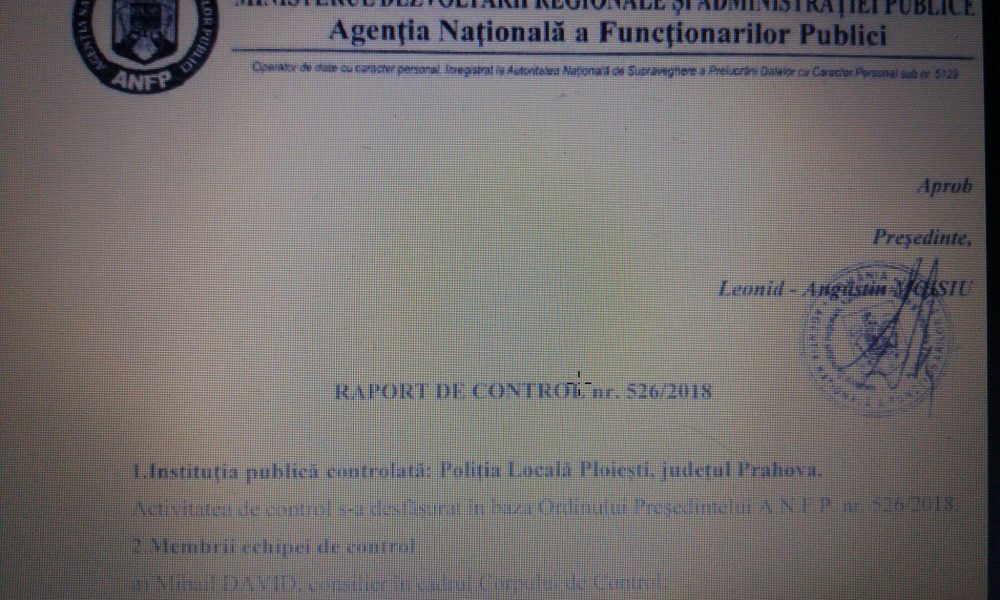 Va prezentam un Raport de Control al ANFP (nr. 526/23.02.2018) care confirma fara echivoc prostia celor de la juridic, harababura din aceasta institutie si faptul ca, Mihai Dimitrie Valentin ocupa postul de sef Birou Ordine Publica in mod ilegal!