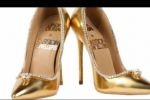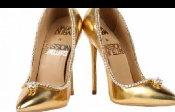 Pantofii au fost expuşi la hotelul Burj Al Arab din Dubai, iar producătorul, Jada Dubai, a precizat că sunt cei mai scumpi pantofi din lume, fiind decoraţi cu aur, mătase şi sute de diamante de 15 carate.