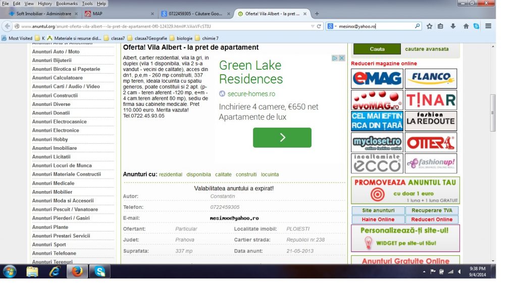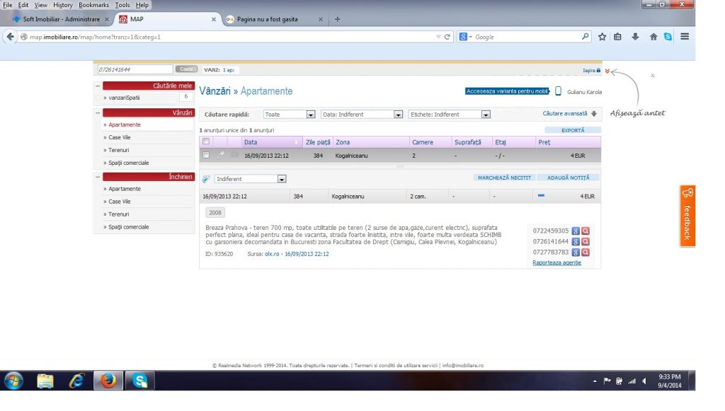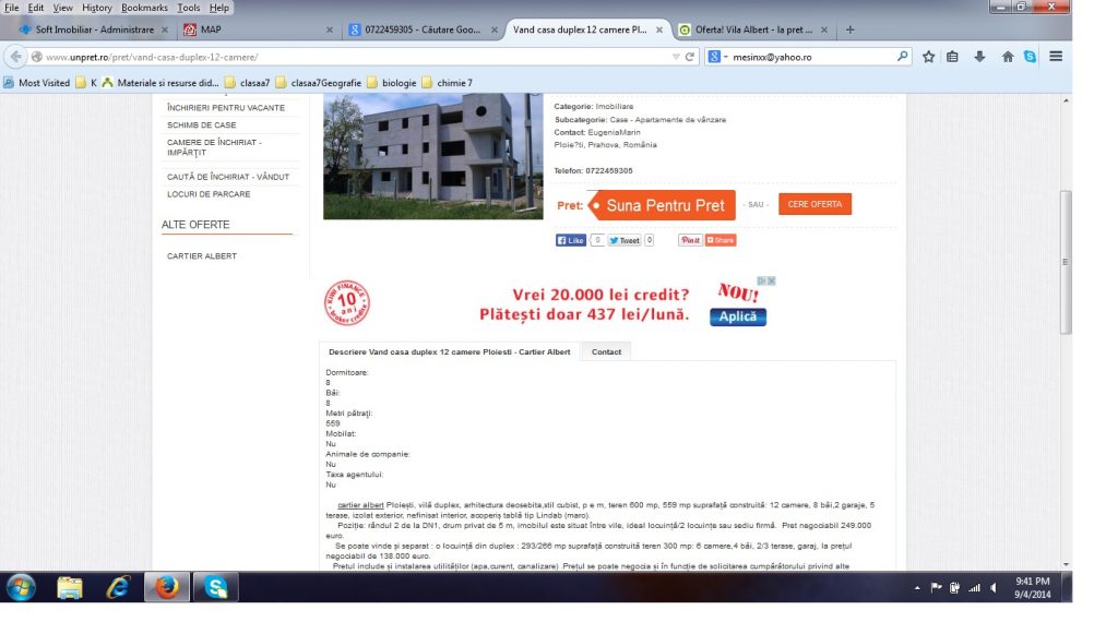 Foarte grav, MARIN CONSTANTIN, ofiter SRI cu grad si functie superioare, colonel respectiv de general, comandant de unitate, si-a permis sa afiseze pe internet, in 26.08.2013, ora 07:01:29, cu nr. de telefon al SRI, urmatorul anunt de „samsar de terenuri si vile”: „BREAZA – CASA LA COMANDA ! – PE 400 SAU 700 MP !. BREAZA – CONSTRUIM CASA LA COMANDA CLIENTULUI, PROIECT ALES DE CUMPARATOR, MATERIALE: CARAMIDA + LEMN SAU LEMN. SUPRAFATA CONSTRUITA 150 MP, AMPRENTA LA SOL 75 MP. PRETUL CASEI LA STADIUL FINISATA ESTE 89.000 EURO”.