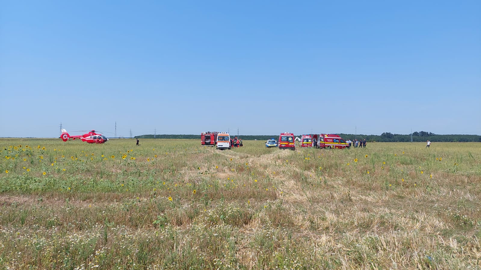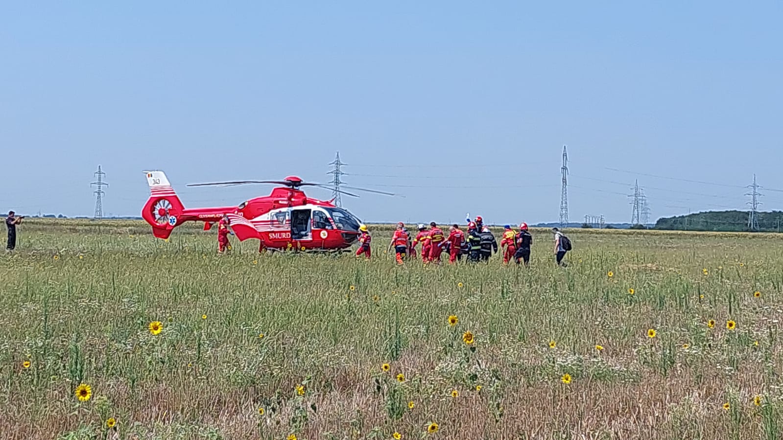 Elicopterul SMURD a aterizat în zona accidentului şi a identificat 2 persoane rănite, care sunt, din fericire, conştiente. Este vorba despre doi bărbaţi, în vârstă de 38, respectiv 72 de ani.