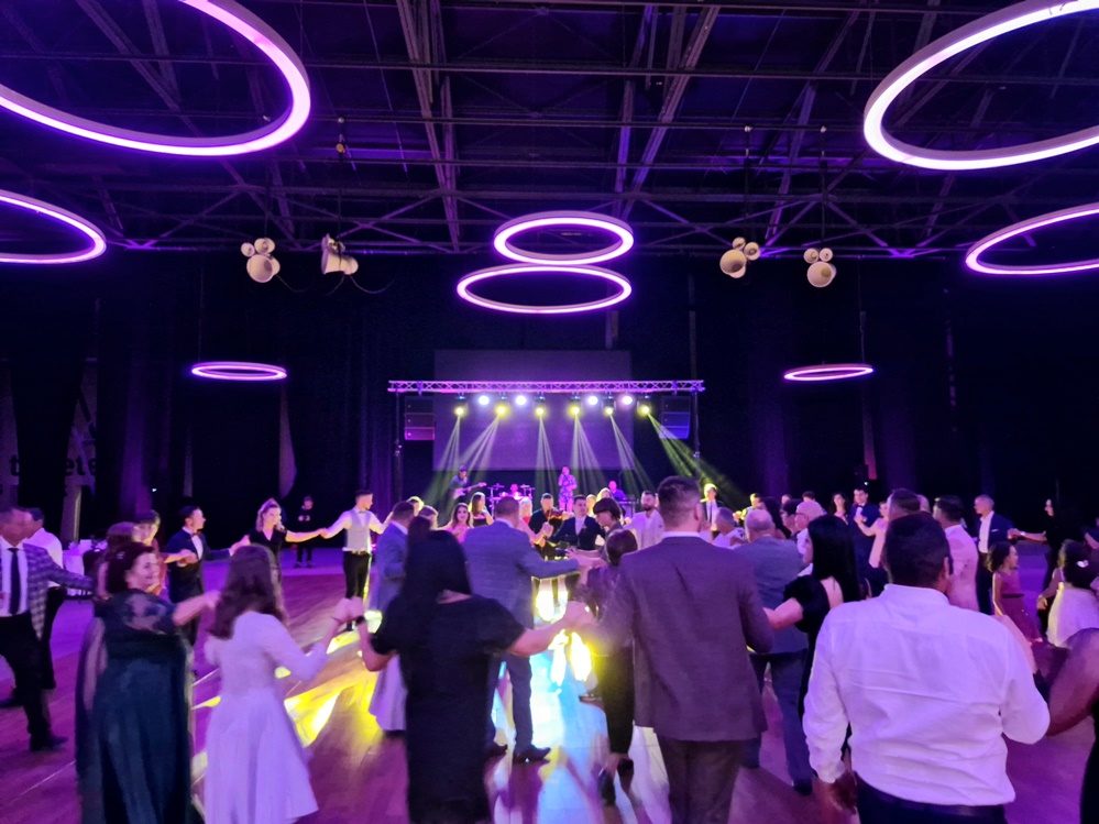 Povestea acestei nunți s-a scris într-una din cele mai dificile săli de evenimente din punct de vedere al acusticii din Brașov. Aleasă pentru a acomoda 2000 de invitați, locația a impus instalarea celor mai performante echipamente de sonorizare pentru nuntă și o schelă de lumini absolut grandioasă, care s-au livrat cu o zi înainte, cu ajutorul a două autoutilitare și cu extra efort și dedicare din partea echipei Full Events.