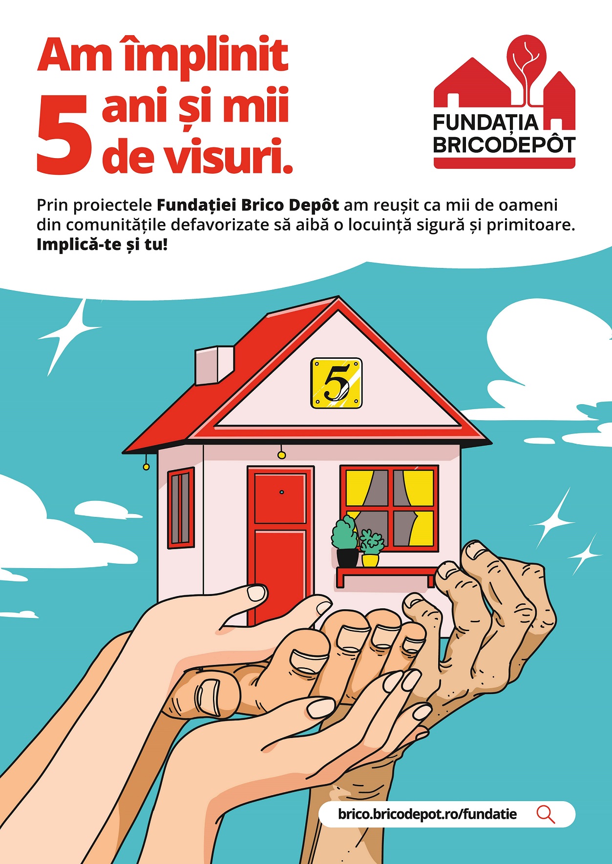 familiilor cărora am reușit să le transformam casa într-un cămin primitor, la zâmbetele copiilor care acum se bucură de condiții mai bune în unitățile de învățământ renovate și până la liniștea oamenilor care și-au găsit un adăpost sigur în momente de criză, impactul pe care l-am creat nu poate fi măsurat doar în cifre. Este vorba despre viețile pe care le-am protejat și despre încrederea că împreună putem construi un viitor mai bun pentru toți. Continuăm această misiune cu aceeași energie și pasiune, dorindu-ne să fim un partener de încredere pentru toate comunitățile care au nevoie de sprijinul nostru,” a spus Georgiana Brehuescu, Head of BricoDépôt Foundation & Community Investments Advisor.